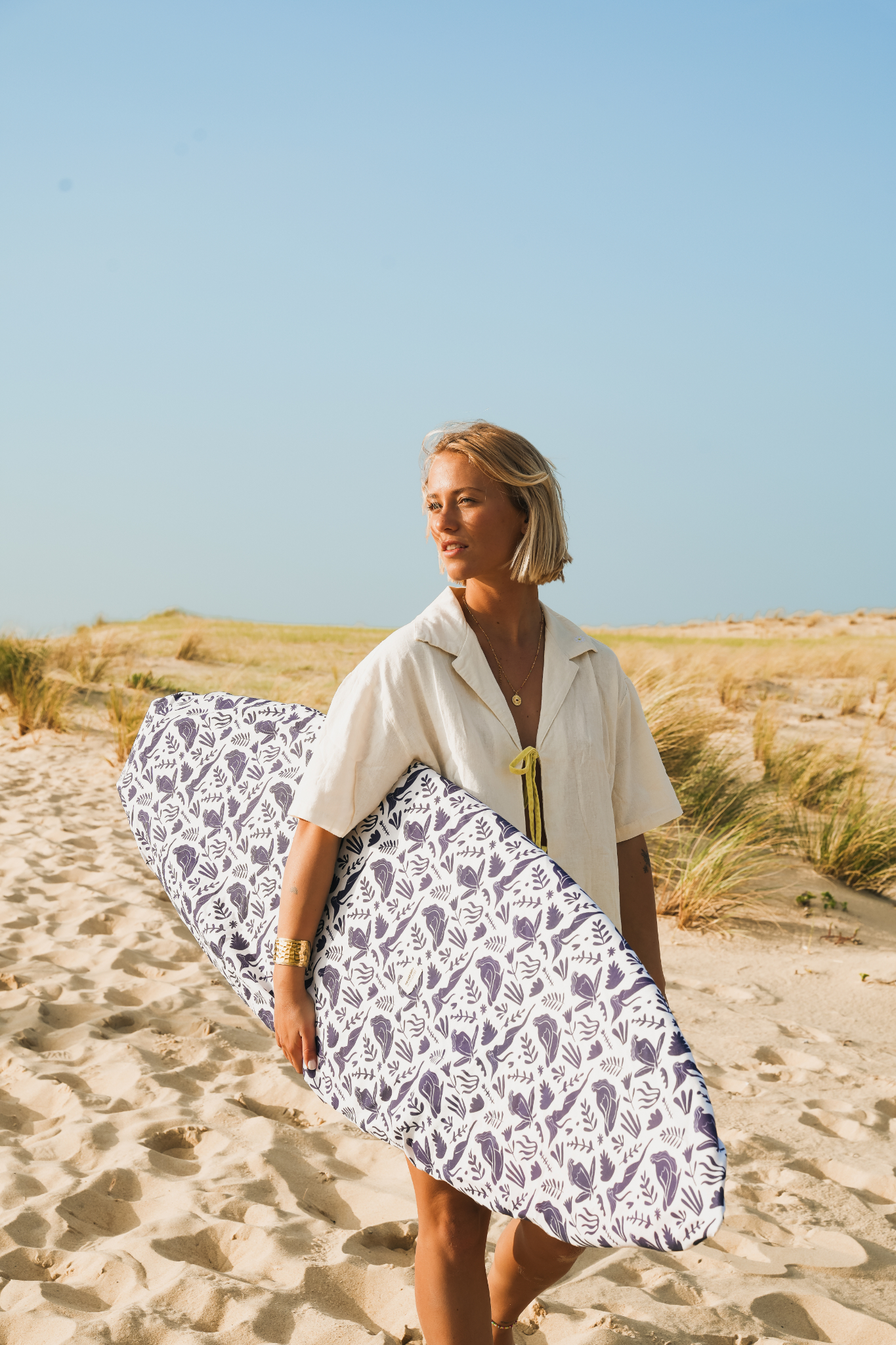 En tant que fondatrice et directrice artistique, je pilote l’ensemble du processus créatif : de la recherche de tendances et de l’élaboration des concepts, au design textile et à la conception des collections. Je sélectionne des matières recyclées et upcyclées et veille à ce que chaque pièce reflète l’ADN de la marque, entre fonctionnalité, style et engagement.